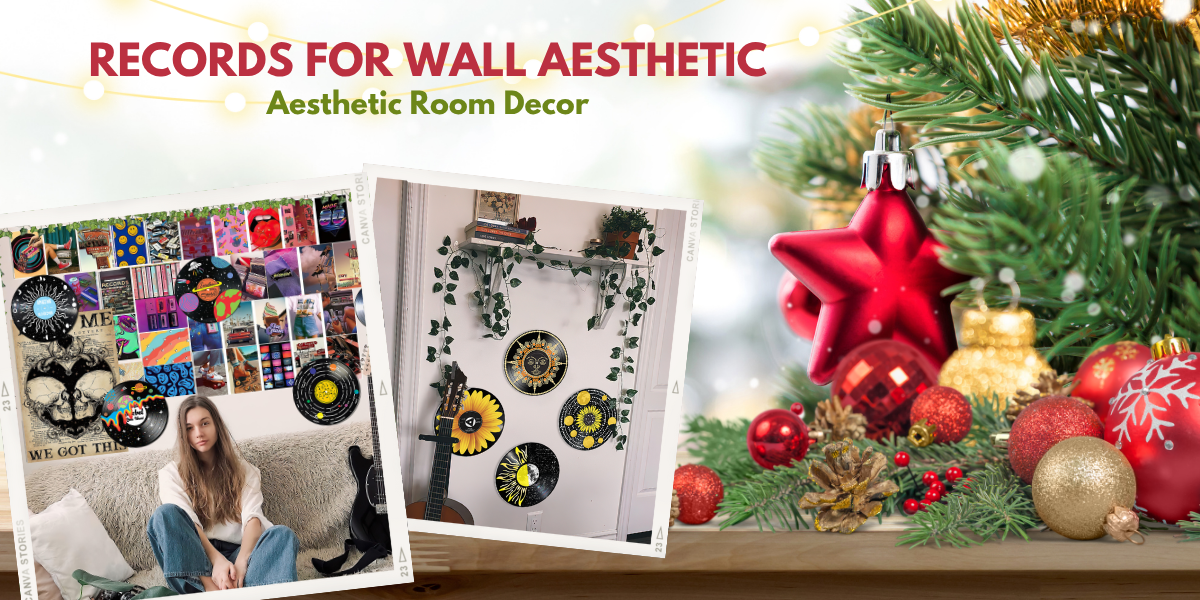 HK Studio Hippie Decor, Posters for Room Aesthetic - Record Decor, Music Themed Party Decorations, 4pcs 12"