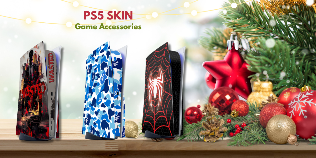 Skin Sticker for Game Console 5 Cover - Spider Art, Compatible with Both Disc Edition & Digital Edition (not Slim Ver) - 2 Controller Skins & Console Skin - No Bubble, Full Protection, Removable