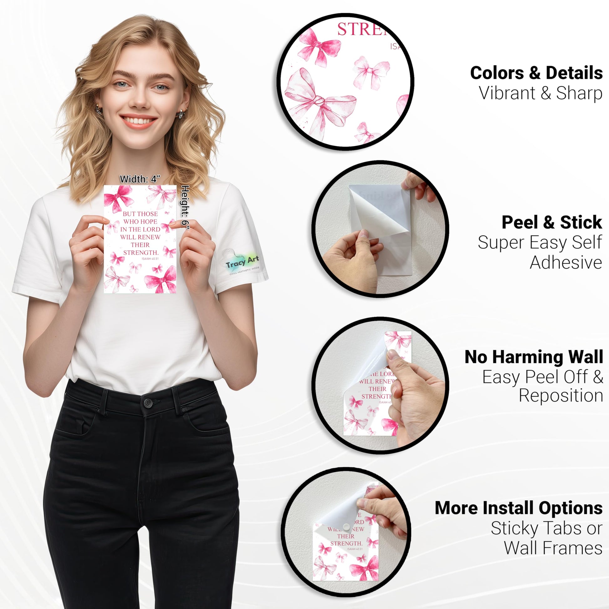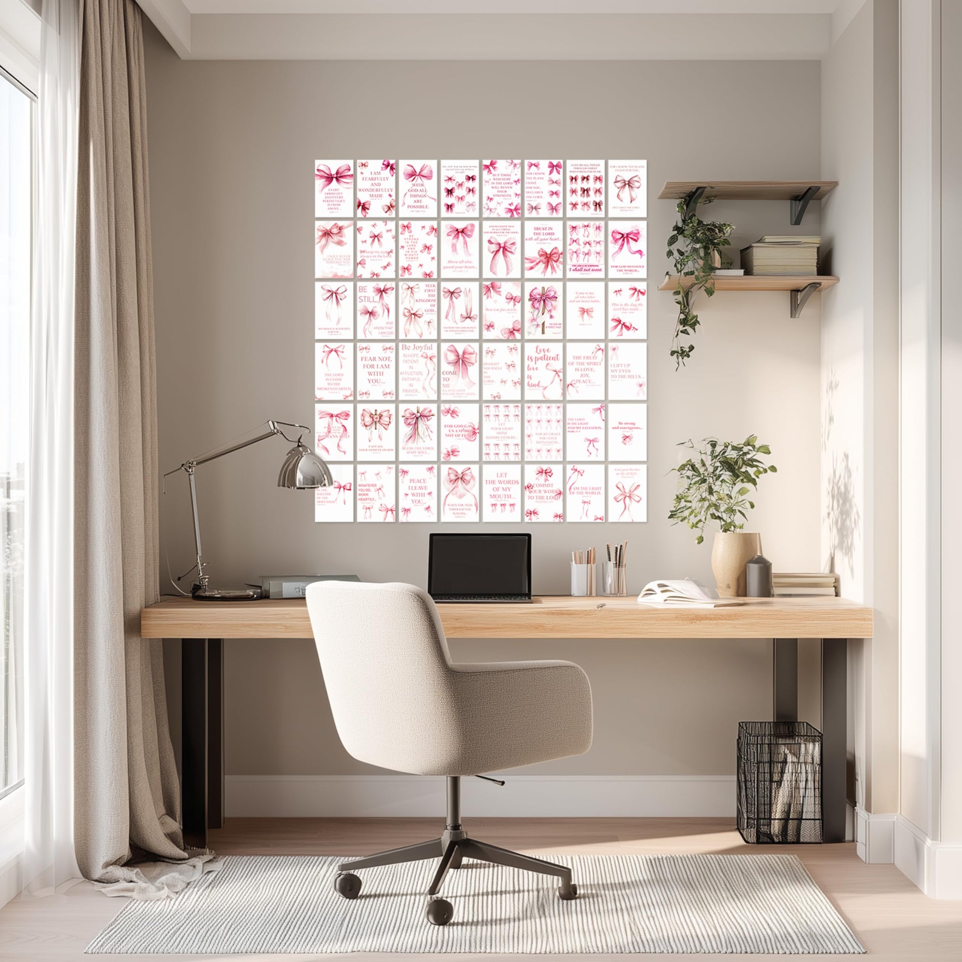 HK Studio Pink Bow Decor - Bible Verses Wall Decor, Posters for Room Decor Aesthetic, Unframed 48 Pcs 4" x 6"