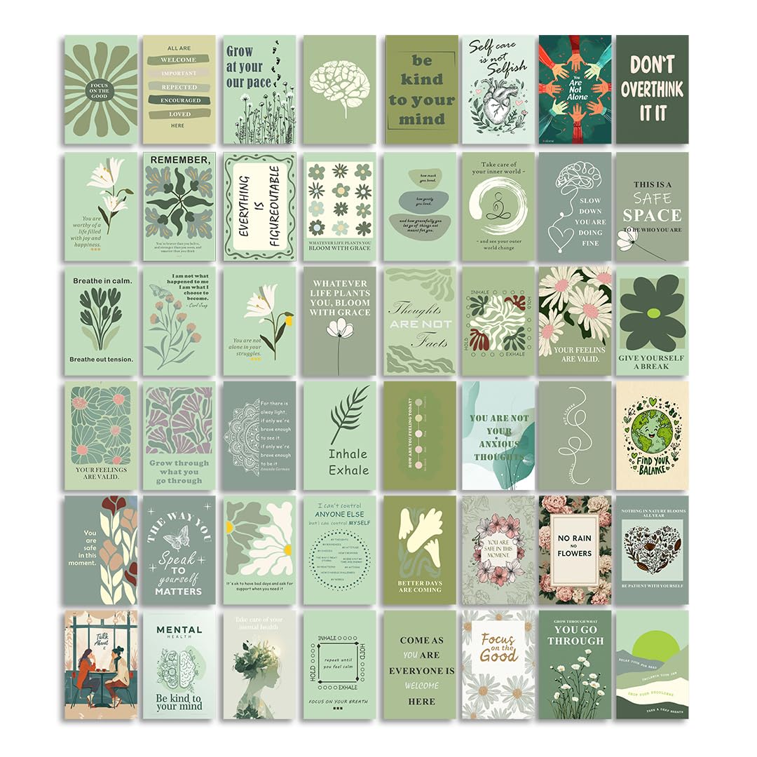 HK Studio Sage Green Mental Health Posters - Therapy Office Decor, Unframed 48 Pcs 4" x 6"