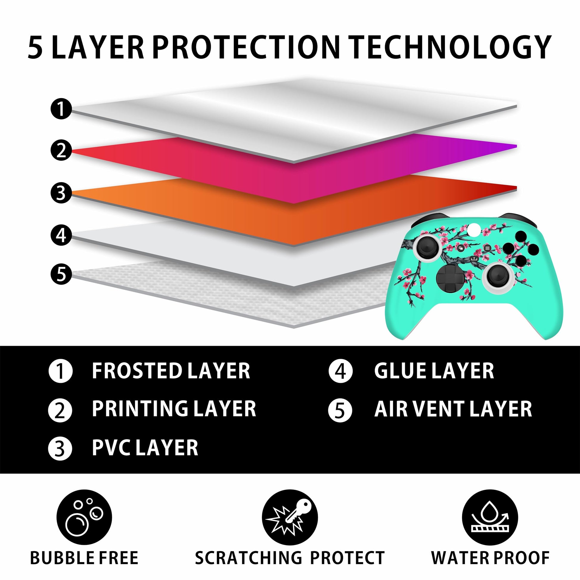 - Thanks for 5 protection layers, XBX series x wrap is ultra-thin, durable, no fading, waterproof, bubble-free, scratch resistant and especially no glue residue