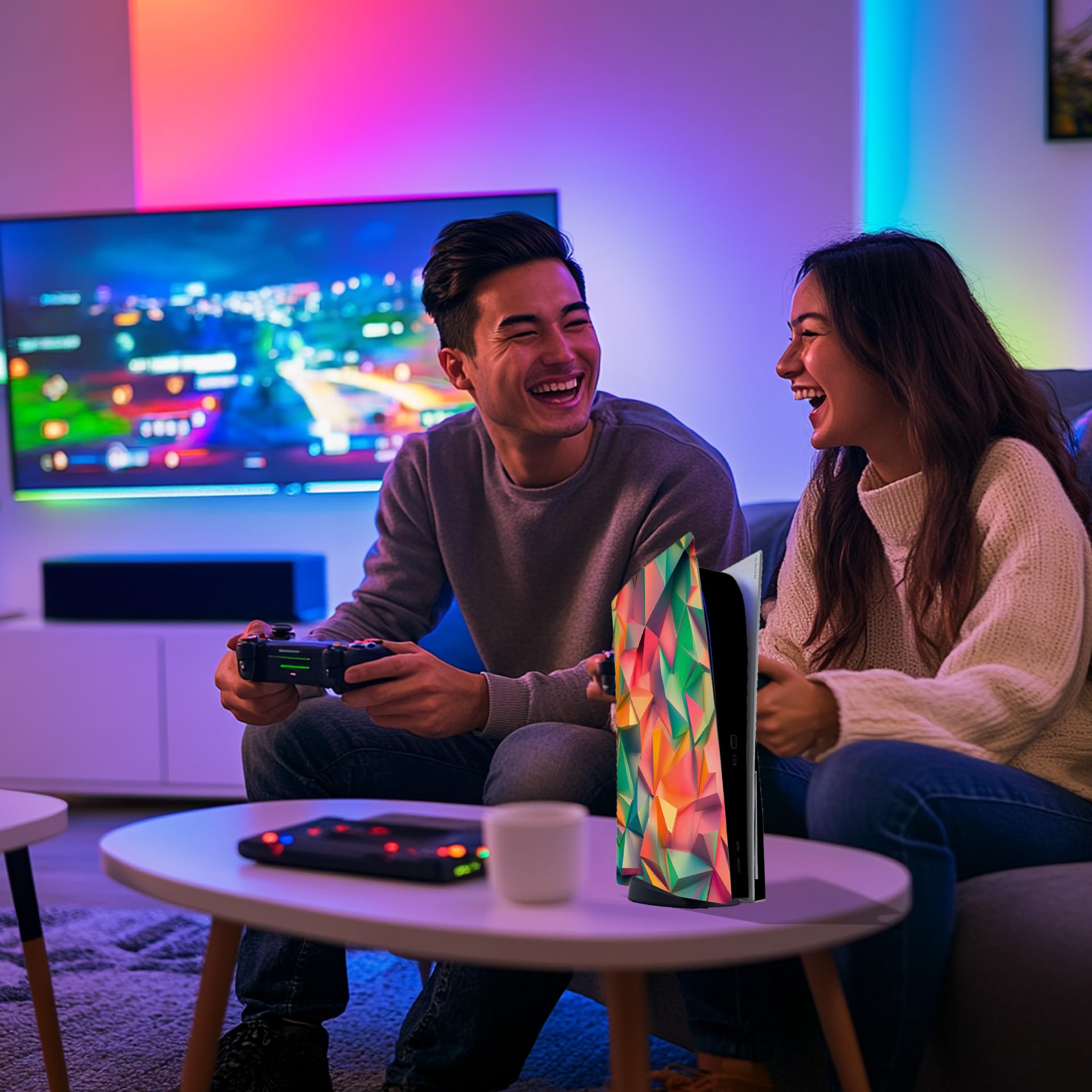 Skin Sticker for Game Console 5 Cover - 3D Polygon, Compatible with Both Disc Edition & Digital Edition (not Slim Ver) - 2 Controller Skins & Console Skin - No Bubble, Full Protection