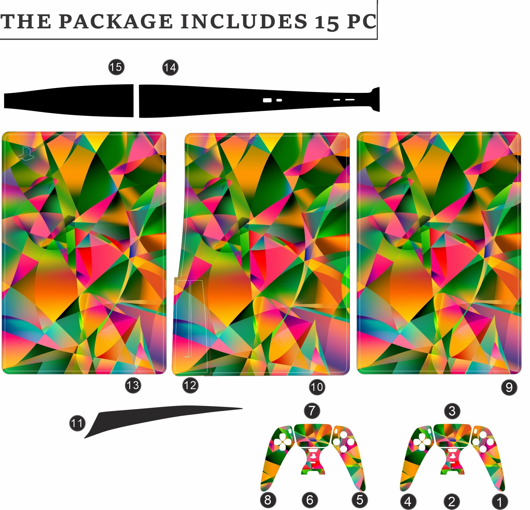 Skin Sticker for Game Console 5 Cover - 3D Polygon, Compatible with Both Disc Edition & Digital Edition (not Slim Ver) - 2 Controller Skins & Console Skin - No Bubble, Removable