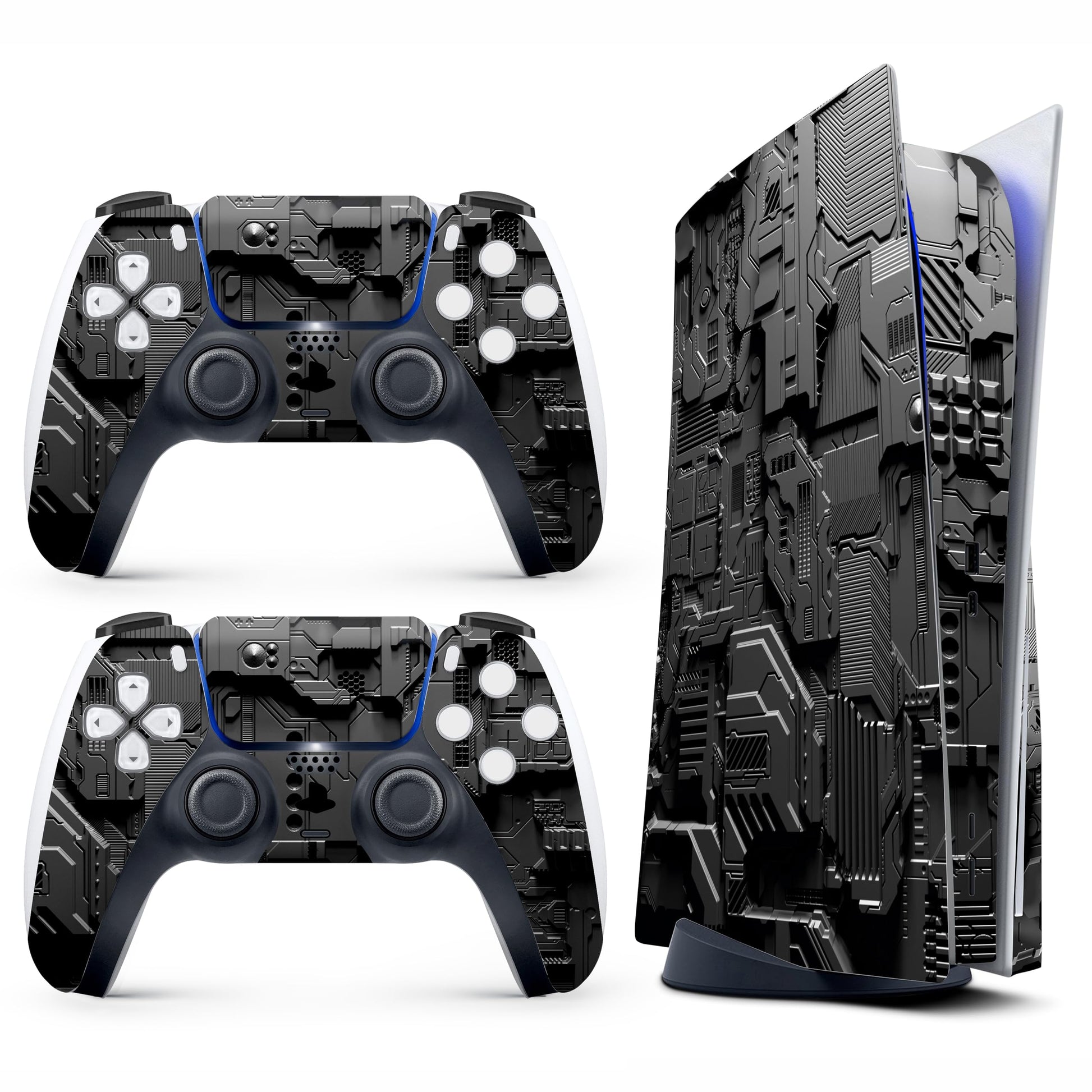 Skin Sticker for Game Console 5 Cover - Cyber Armor, Compatible with Both Disc Edition & Digital Edition (not Slim Ver) - 2 Controller Skins & Console Skin - No Bubble, Full Protection, Removable