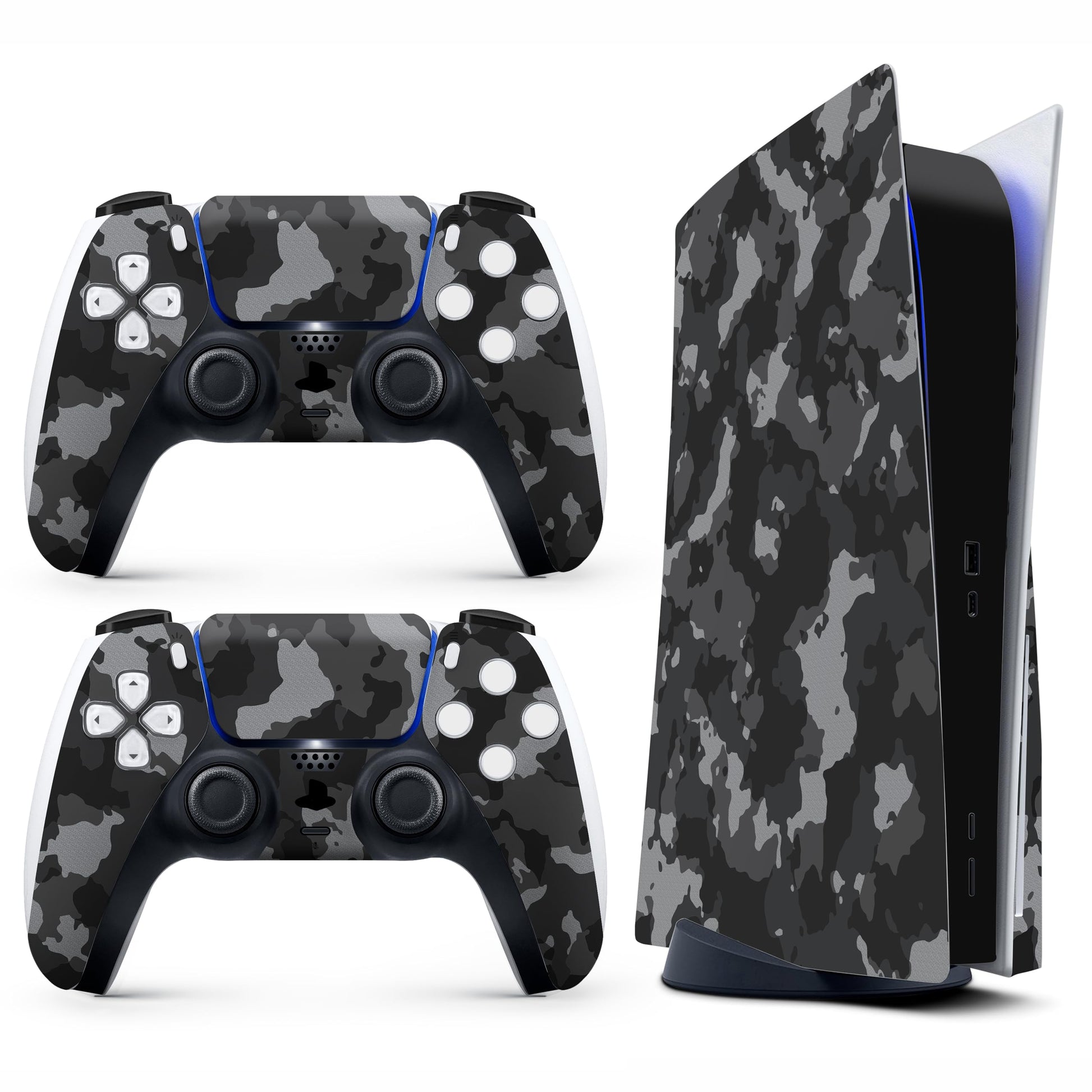 Skin Sticker for Game Console 5 Cover - Grey Camo, Compatible with Both Disc Edition & Digital Edition (not Slim Ver) - 2 Controller Skins & Console Skin - No Bubble, Full Protection, Removable