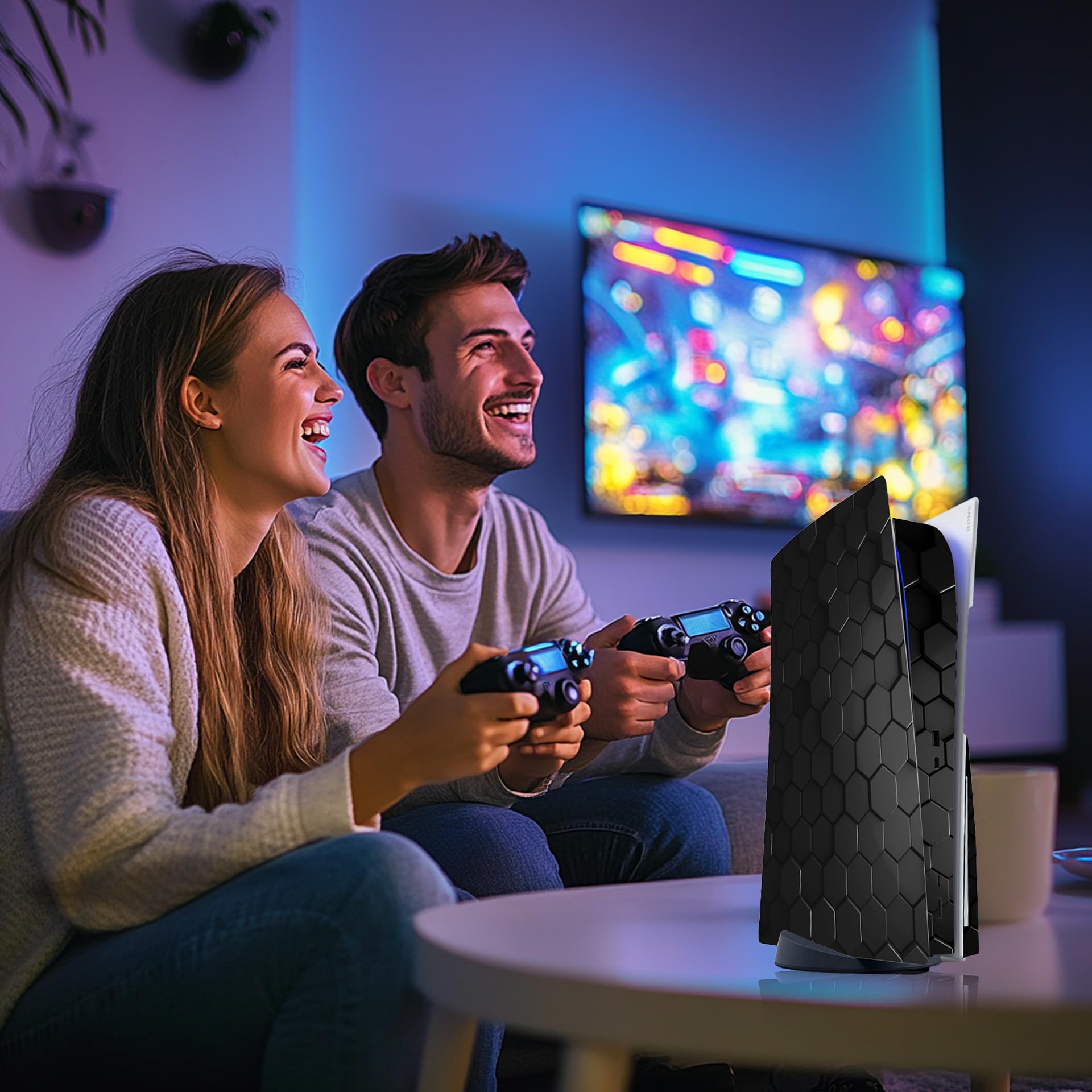 Skin Sticker for Game Console 5 Cover - Hexagon, Compatible with Both Disc Edition & Digital Edition (not Slim Ver) - 2 Controller Skins & Console Skin - No Bubble, Full Protection, Removable