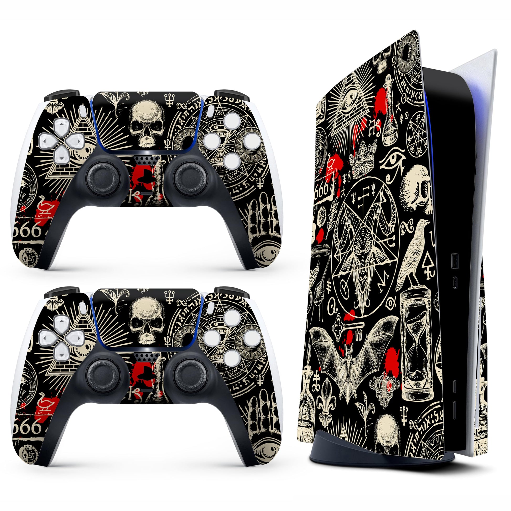 Skin Sticker for Game Console 5 Cover - Horror Gothic, Compatible with Both Disc Edition & Digital Edition (not Slim Ver) - 2 Controller Skins & Console Skin - No Bubble, Full Protection, Removable