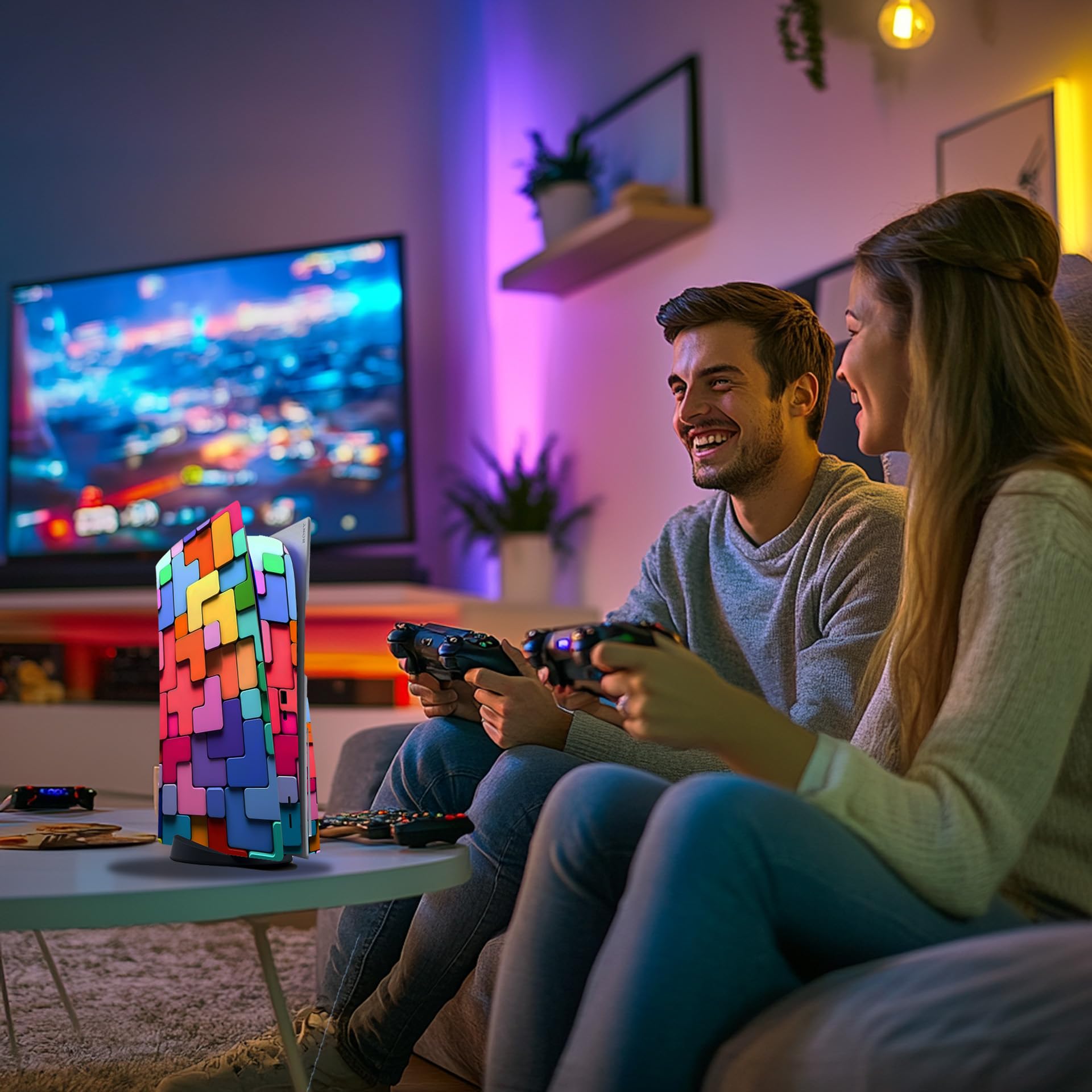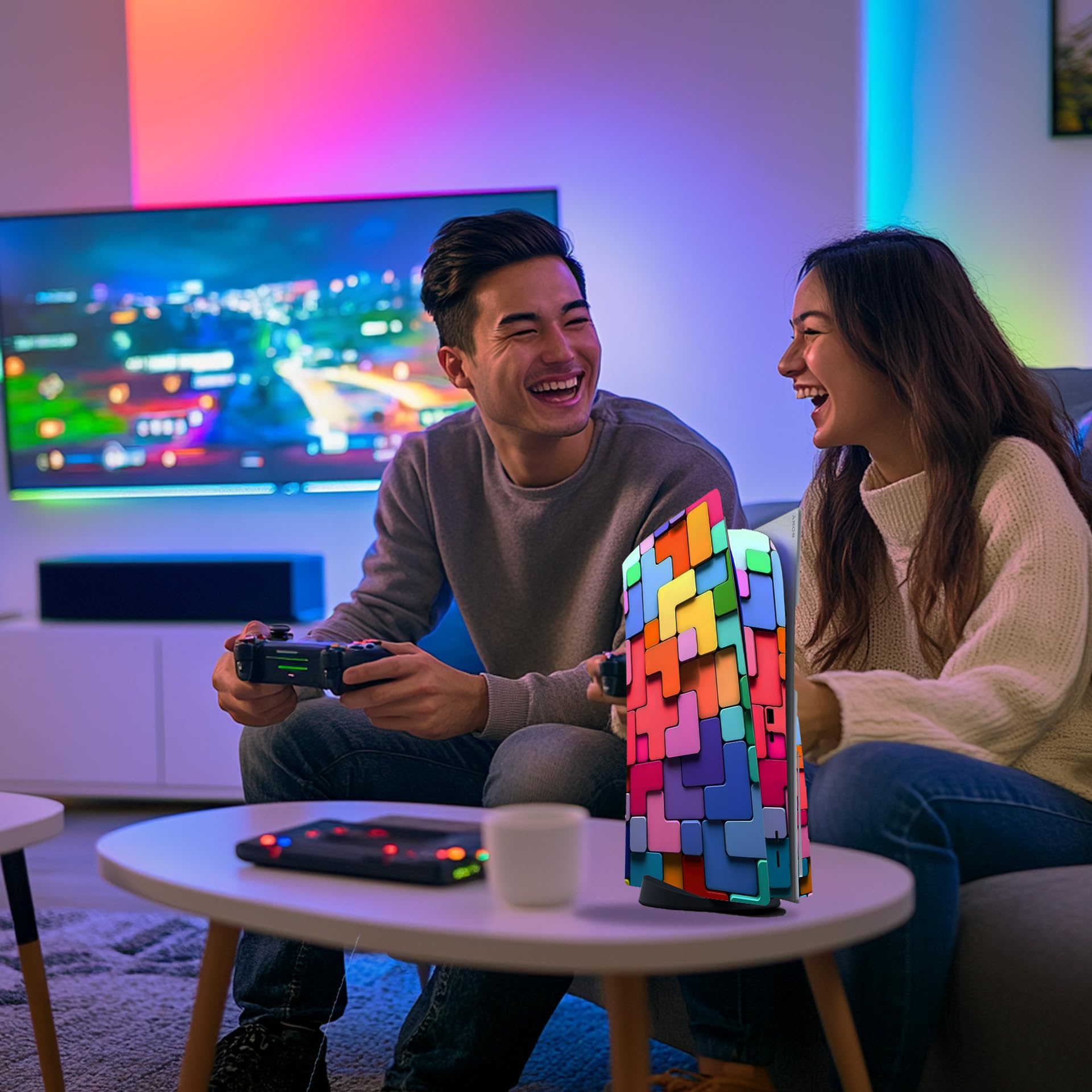 Skin Sticker for Game Console 5 Cover - Puzzle Art, Compatible with Both Disc Edition & Digital Edition (not Slim Ver) - 2 Controller Skins & Console Skin - No Bubble, Full Protection, Removable